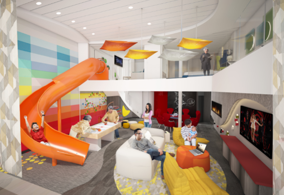此外,光谱号还新增了面积为261平米的完美家庭套房(Ultimate Family Suite),含三间独立卧室,可供祖孙三代11人的私密性居住空间;配有卡拉OK和全套环绕声设备的娱乐室,可供全家老少K歌、观影、游戏等娱乐活动;而主卧更设有一间伸出海平面的无敌海景浴室,及可从二层卧室直接通向客厅的儿童滑梯,可以说满足了全家老少的住宿和娱乐需求。