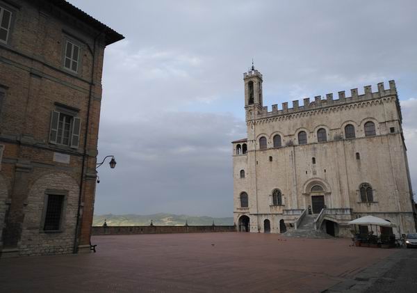古比奥的市政厅及其广场,由于起个大早,拍到了空无一人的广场