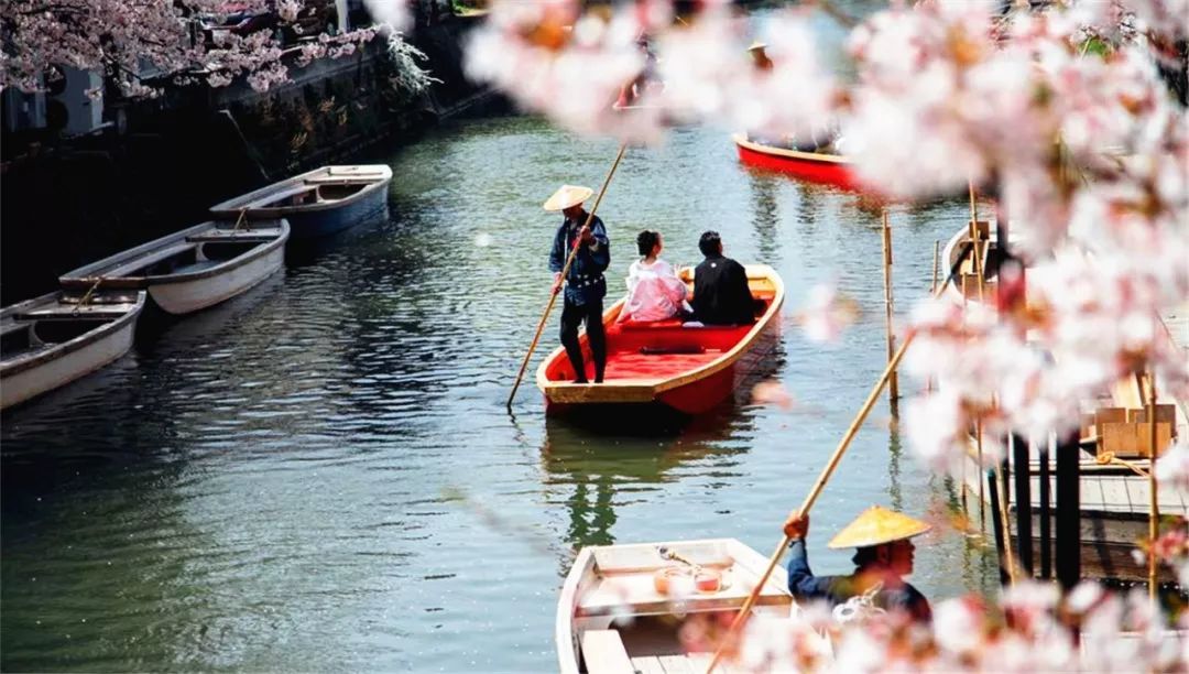 坐船摇曳于运河之中,两岸樱瓣纷飞,沿途是红砖灰瓦的20世纪初建筑,一路沉醉在无比美好的春日氛围中。
