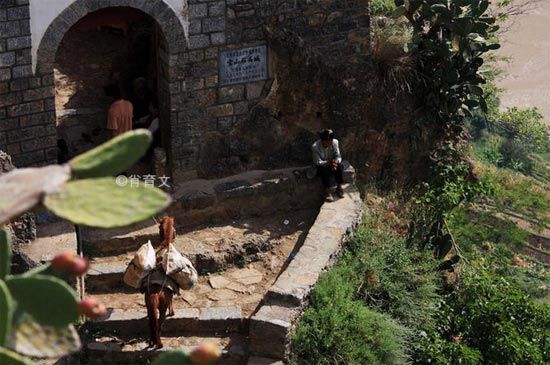 我走进石头城时,石城门口坐着几个纳西老妇,头戴黑色头巾,其装束与其他地方的纳西多有差异,与其对话,他们能讲流利的纳西西部方言,但本地人之间则讲一种听不太懂的纳西方言。
